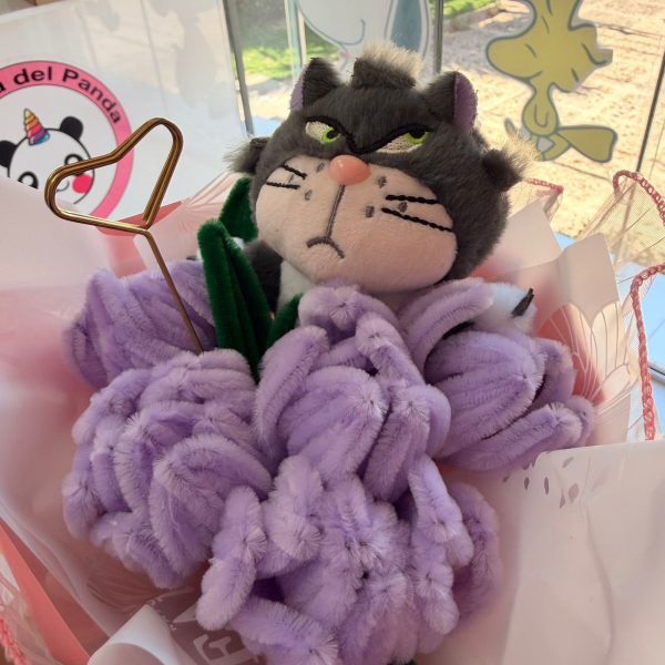 Ramo de lotso de limpia pipas con peluche antialergico de 25cm y papel koreano.