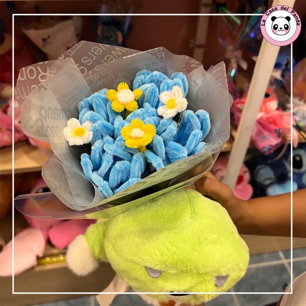 Ramo de lotso de limpia pipas con peluche antialergico de 25cm y papel koreano.